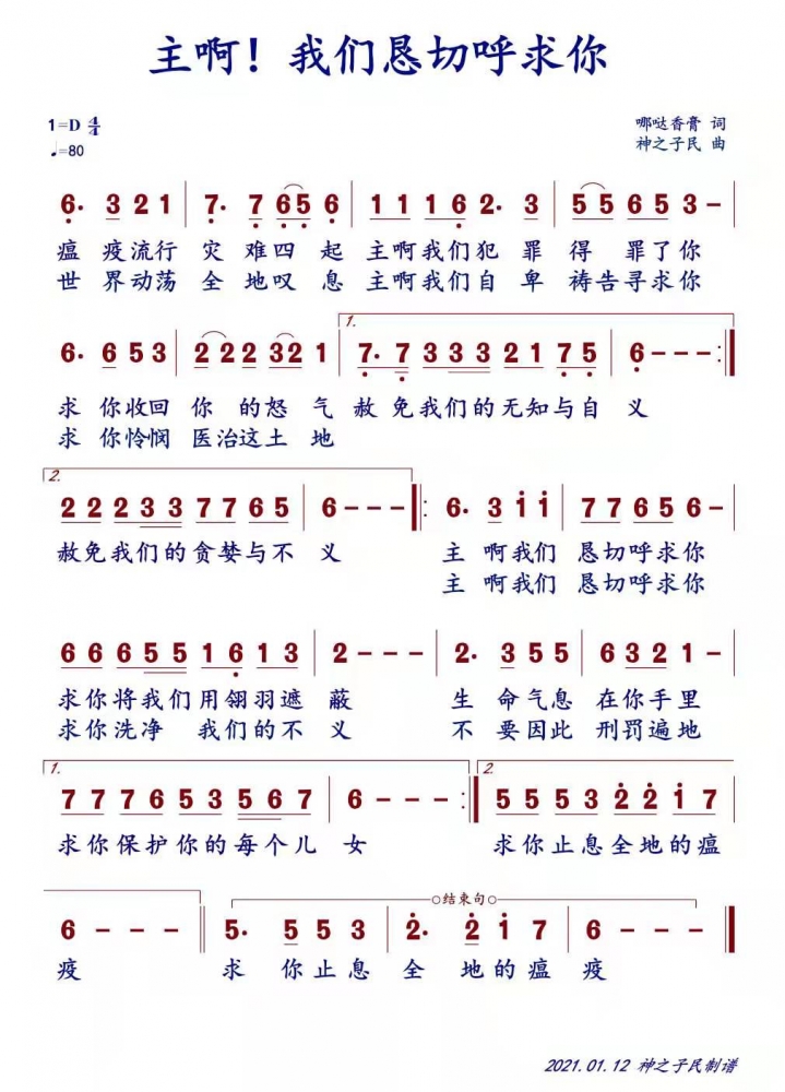 更新了一条心情: 为疫情创作诗歌 【代下 7:14】 这称为我名下的子民,若是自卑、祷告,寻求我的面,转离他们的恶行,我必从天上垂听,赦免他们的罪,医治他们的地。 全文