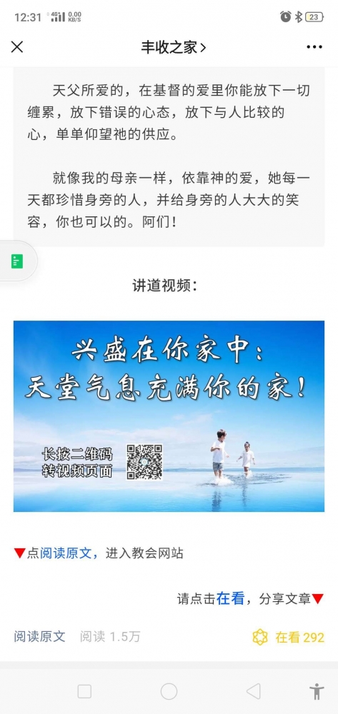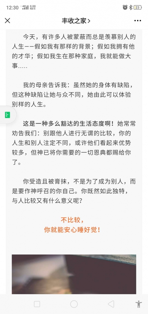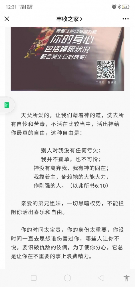 更新了一条心情: 今天路上又在心里听到这句话:“所以我告诉你们,不要为生命忧虑吃什么,喝什么;为身体忧虑穿什么。生命不胜于饮食吗?身体不胜于衣裳吗? 每次都是感觉满满的力量。 全文