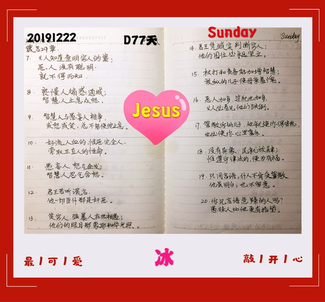 更新了一条心情: 求你将我放在心上如印记,带在你臂上如戳记;因为爱情如死之坚强,嫉恨如阴间之残忍。所发的电光,是火焰的电光,是耶和华的烈焰。爱情,众水不能息灭,大水也不能淹没,若有人拿家中所有的财宝要换爱情,就全被藐视。”(雅歌8:6-7 全文